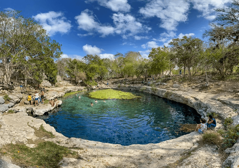 Cenote Xlacah is inside the Dzibilchaltun archaeological zone, about 15 minutes north of Merida. You can swim in a cenote and tour Mayan ruins on the same visit, which is a combination that shouldn't be as rare as it is. The cenote is open-air, about 40 meters deep, and surrounded by low jungle. It's not the most visually dramatic cenote on this list, but the context (swimming in water the Maya used for ceremonies, with a 1,500-year-old temple visible from the edge) makes it.