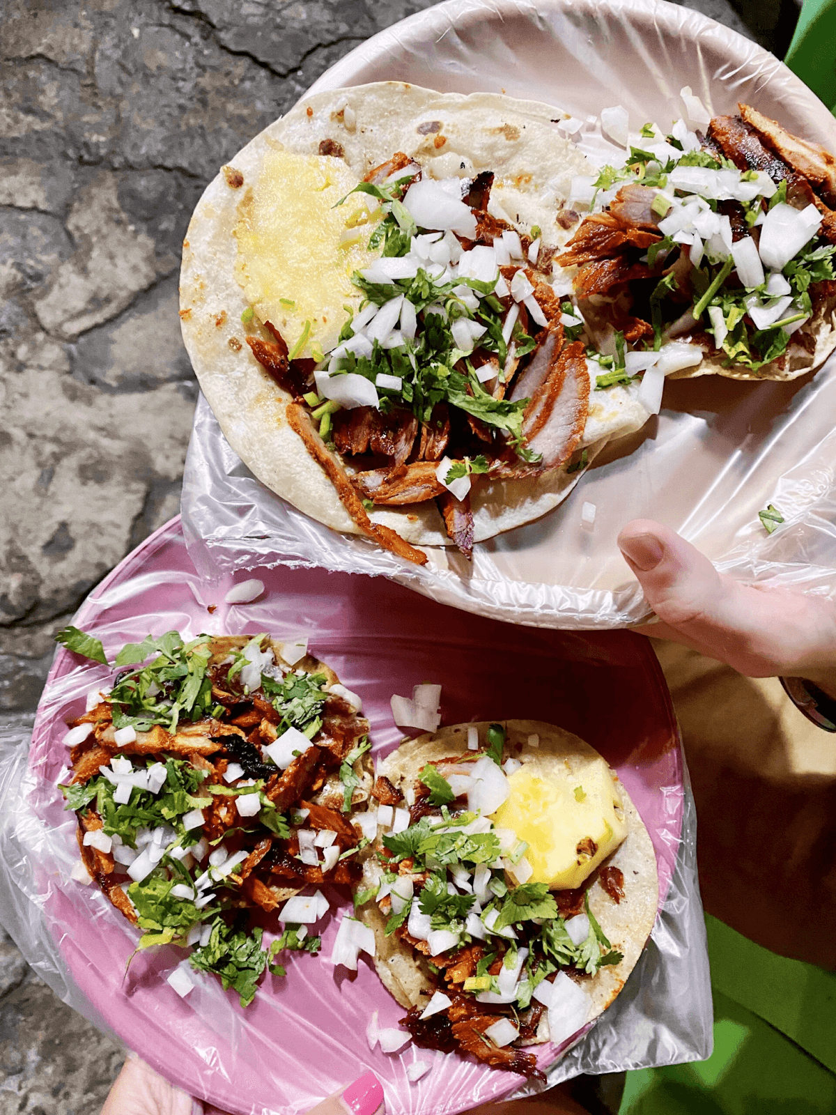 Fresh fruit and aguas frescas. Fruit stands are on every block, and the variety (mango, papaya, jicama, watermelon, coconut) is sliced to order and dusted with chili and lime. Aguas frescas (fruit-infused water: horchata, jamaica, tamarindo, limon) are sold by the cup at stands and markets and are the best way to stay hydrated while walking between taco stops.